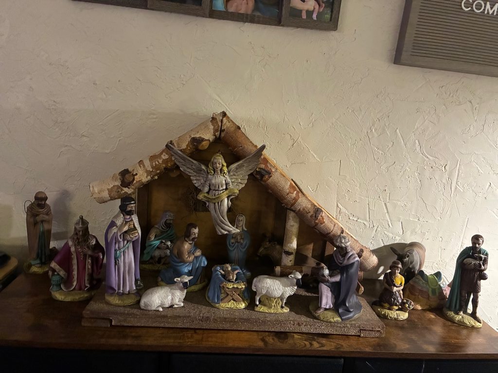And lastly, starting this year, we have our special nativity scene from my Grandpa Robinson. This is so sentimental and also special because Nova is starting to learn about baby Jesus.